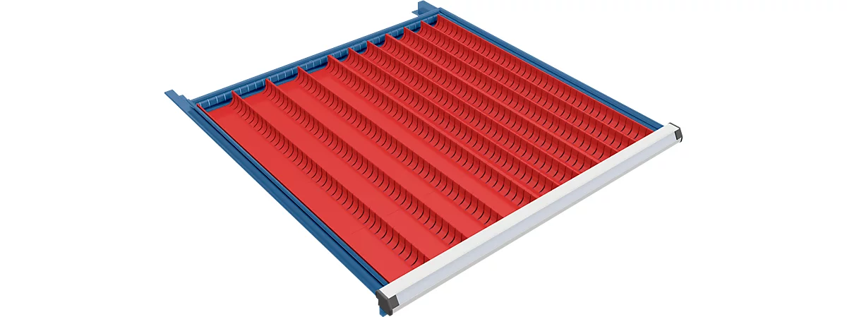 - zum Lieferumfang gehören jeweils eine unterschiedliche Anzahl von Querteilern (Mittelplatten), mit denen die Längsmulden noch unterteilt werden können